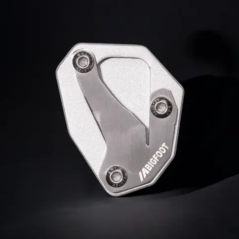 BIGFOOT™ ( side stand enlarger) extends the side stand’s base surface to almost double its original size, ensuring maximum stability even when your bike is fully loaded. No more worrying about your bike slowly slipping on wet roads, soggy trails, or uneven parking spots. The added leverage also makes it easier to climb onto, keeping your loaded motorcycle standing on kick stand.